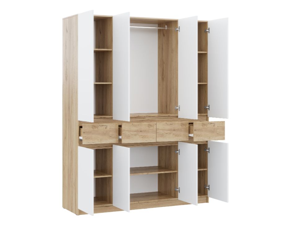 2 секции с полками – по 3 регулируемых ниши (376 × 341 × 490 мм) для аксессуаров, обуви или текстиля.
